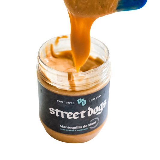 Además, nuestra Mantequilla de Maní StreetDogs está hecha 100% de maní natural, sin sal, azúcar, ni aditivos ni presevantes, lo que la hace ideal para ser utilizada como snack para tu perrito.